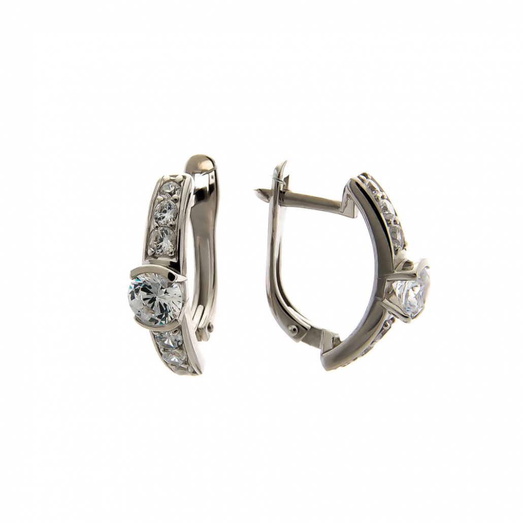 Серьги с фианитом из серебра