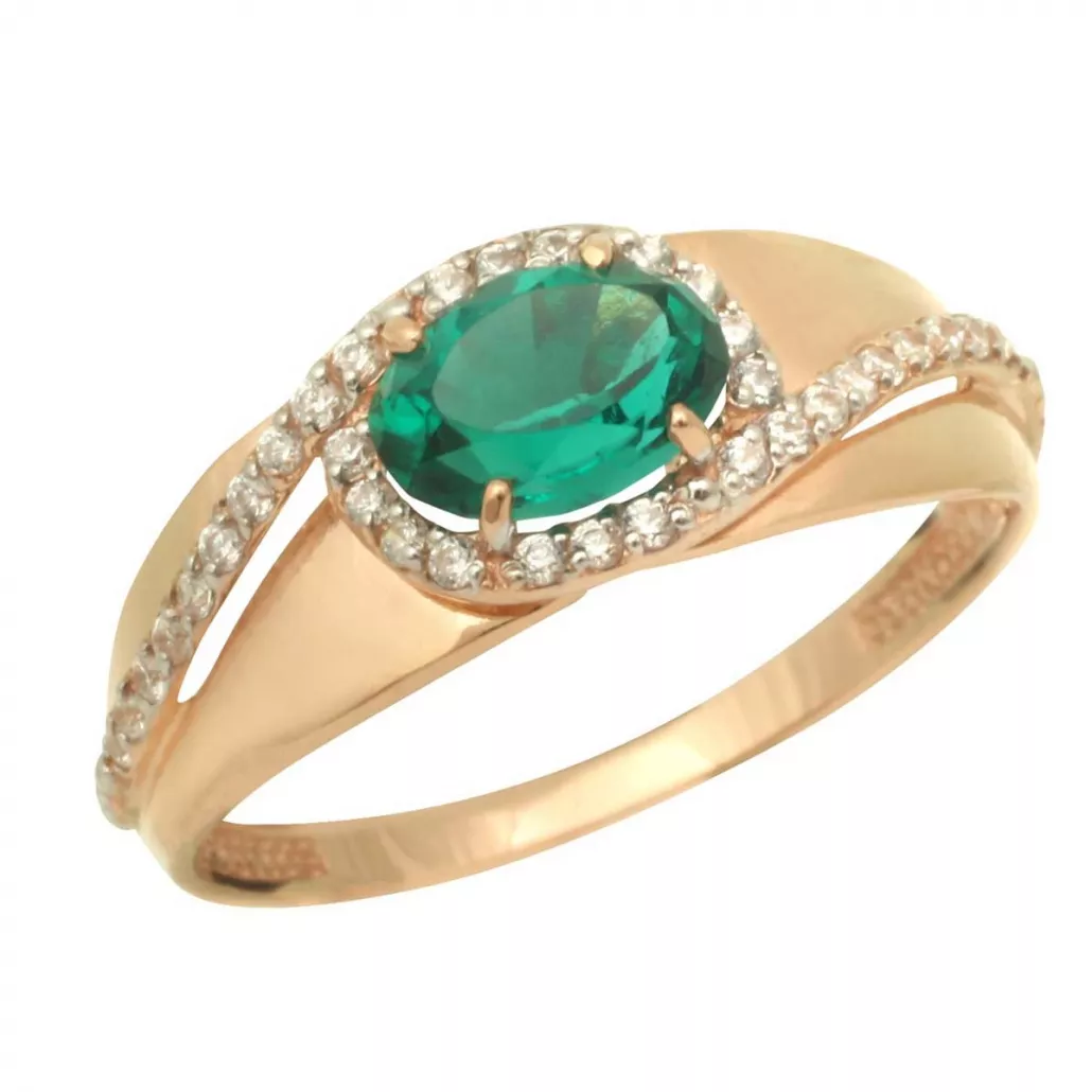- Кольцо с изумрудом и фианитом из золота