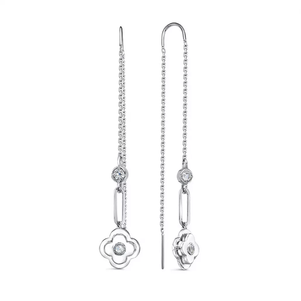 - Серьги-продевки с фианитом из серебра