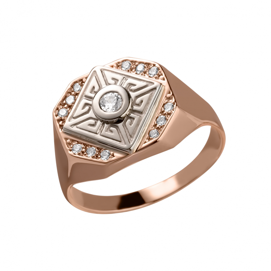 - Кольцо-печатка с фианитом из золота
