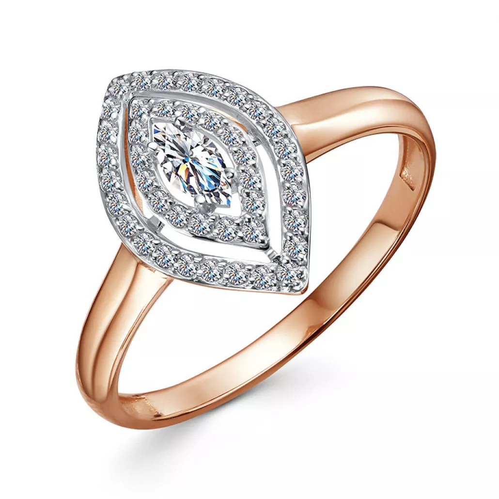 ОписаниеКольцо с фианитом из золотаартикул: 1693807 1 1 142 фианит круг 0.9 0.050, 1 фианит маркиз 5*2.5 0.040 - Материал