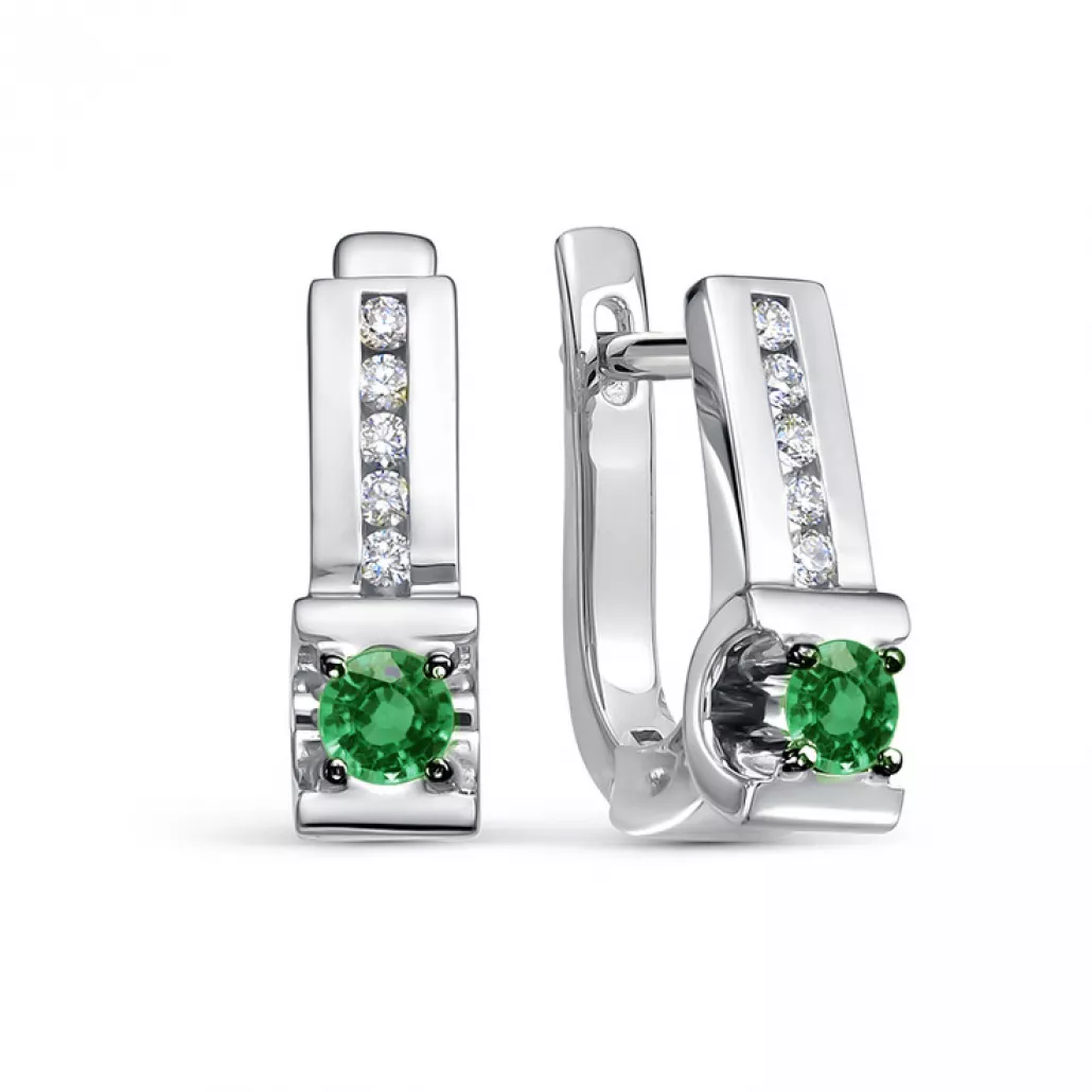 Серьги с бриллиантами с изумрудом из золота