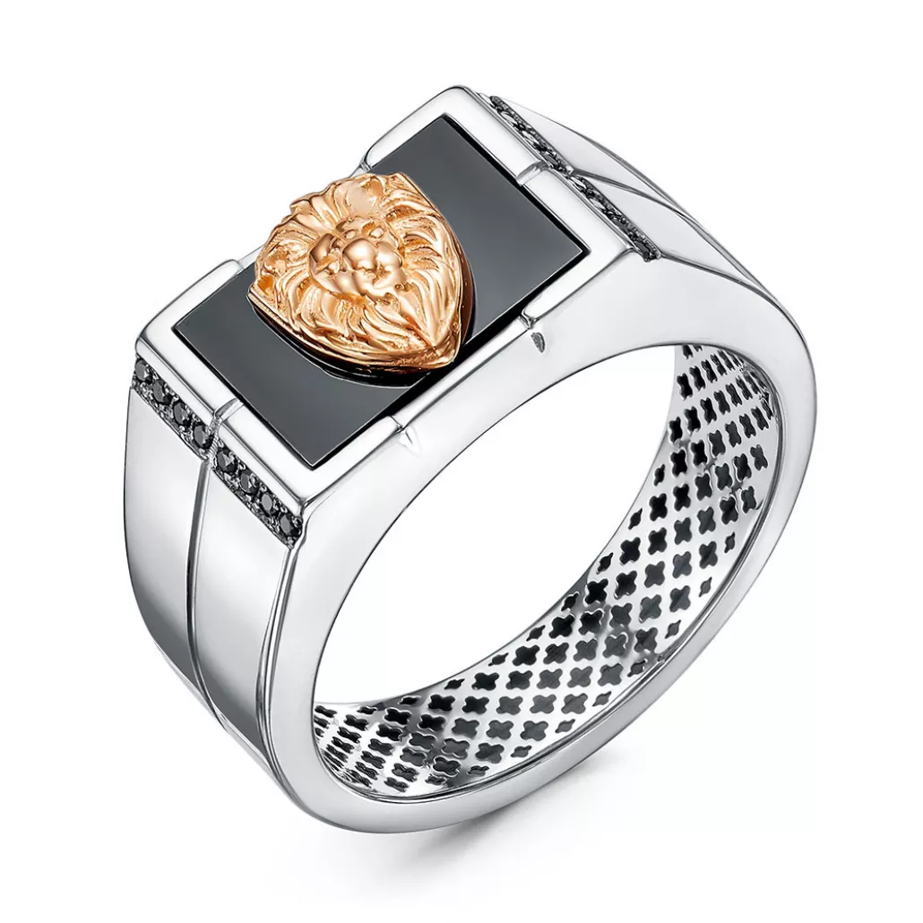- Кольцо-печатка с фианитом и ониксом из золота