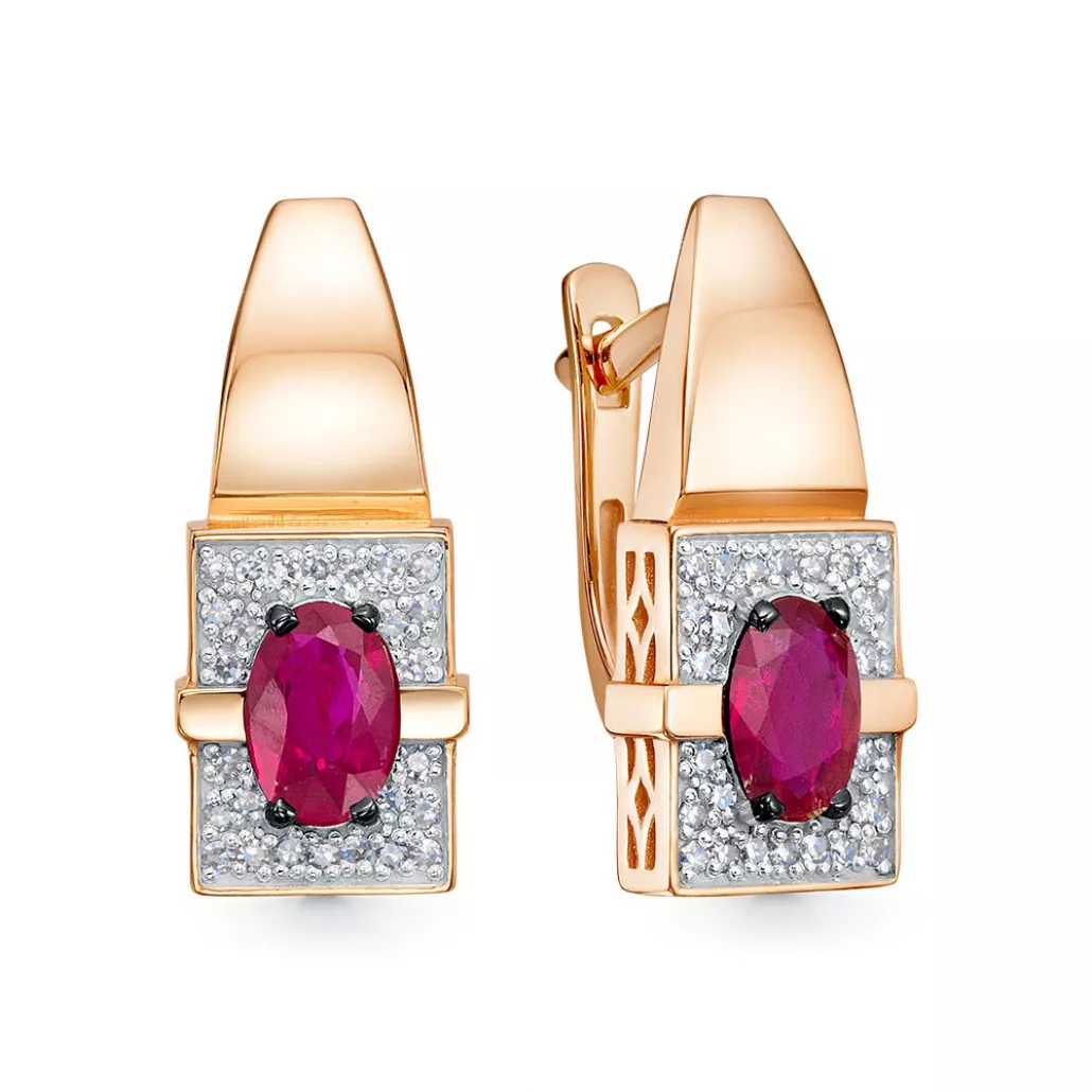 Серьги с бриллиантами с рубином из золота